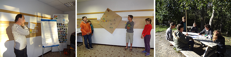 - تدوم الدورة التمهيدية التربوي للمخيم أربعة أيام. وتقام قبل شهرين من الأسفار الصيفية الأولى (منتصف ماي)، أو الشتوية (منتصف أكتوبر) على المركز المشترك للمجموعة المحلية OSI “المنظمة الدولية للترويج للعلوم” (فرنسا، سويسرا، اليابان، الكيبك في كندا...). ويعتبر هذا الاجتماع الطويل تكوينا ميدانياً متواصلاً (مثلاً، يستطيع المشاركون في هذه الدورة التمهيدية للمخيم اختيار وحدات تكوين ميداني مختلفة: التعرف على مختلف أصناف الفراشات، صناعة عصا مشي بواسطة سكين سويسري، التسلق، توجيه كاميرا طائرة، استخدام الخدع البصرية...)، و تكوينا عبر الممارسة (مثلاً، يضع المدرسون أنفسهم محل مشترك لعيش لحظات مختلفة من الأسفار بغية تأمين جميع التفاصيل عندما يحين الوقت لذلك: خلال سهرة طويلة، عند تحديد قواعد العيش، خلال لعبة كبيرة،...). وتهدف الدورة التمهيدية التربوية للمخيم إلى نشر دفتر يومي اعتيادي إلكتروني يستطيع المشتركون معاينته عبر الإنترنت.
